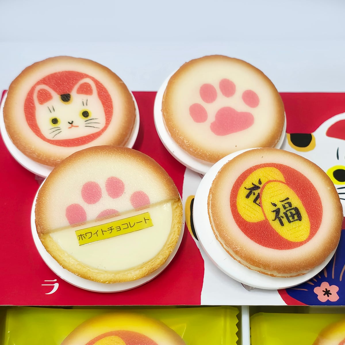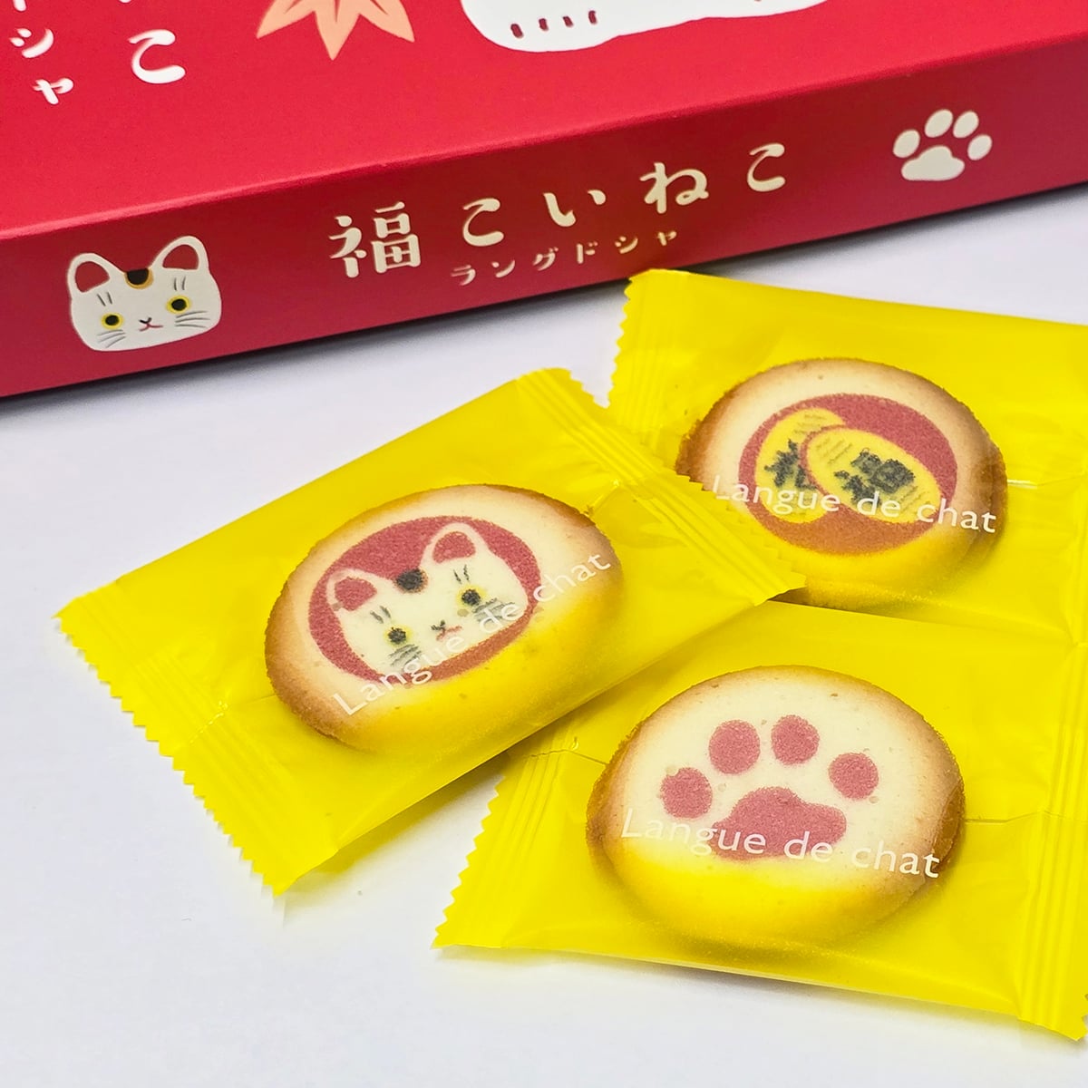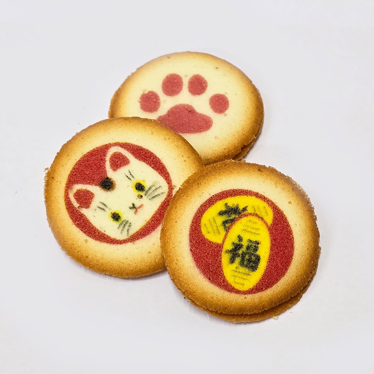 ▸ 可愛設計:曲奇為可愛的一口大小,設計有3種圖案:貓咪的臉、貓咪足跡,以及印有「福」字的小判形狀。
