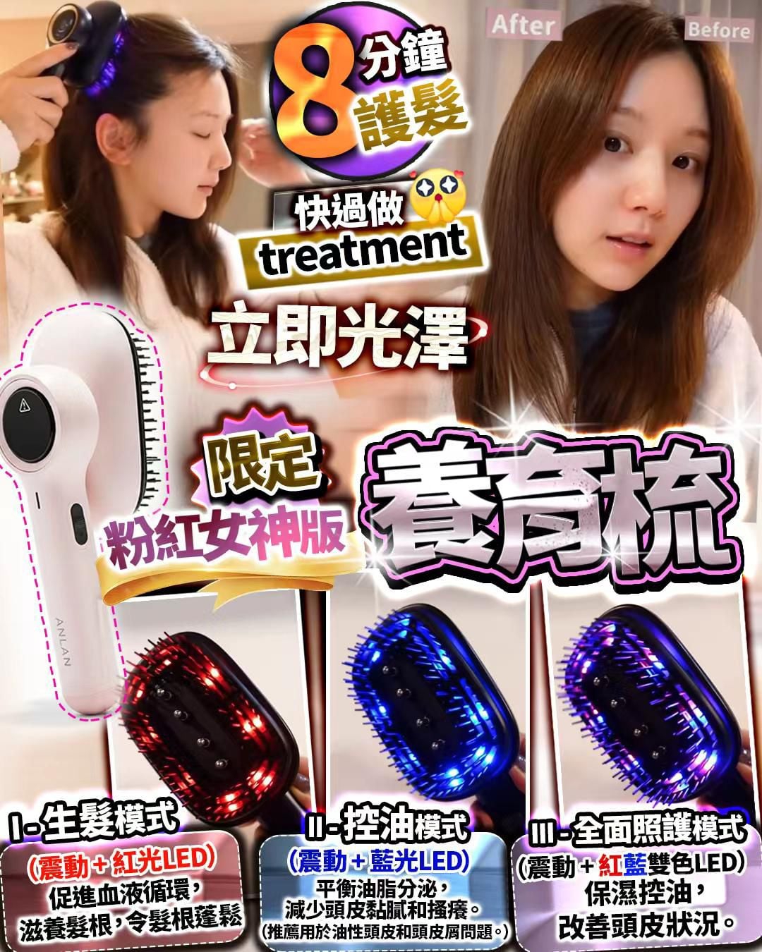 一早起身梳吓頭係基本?傳統嘅梳根本解決唔到頭皮或者髮質嘅問題🥲 Anlan 全新 推出 限量粉紅女神版 🌈 養育梳每日起身🛌只需快速梳理8分鐘破解以下頭髮及頭皮問題