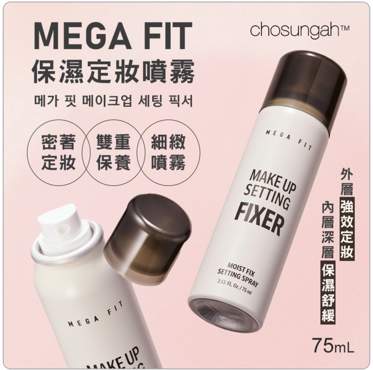 韓國Chosungah #最新款!! FIT MAKE UP SETTING FIXER 保濕定妝噴霧 75ml #突破百萬銷量的MEGA FIT 系列 用過Chosungah家的粉底棒就知道真的超好用 而他們家的定妝噴霧也深受大家喜愛♥ 這次又推出最新款的定妝噴霧 一整天都可以擁有最完美的妝容 *外層緊密定妝,內層保濕舒緩 √ 密著固定 雙重保養 噴霧如細霧般均勻 除了定妝還可以維持臉部該有的水分 再也不用擔心用了定妝噴霧後皮膚反而乾燥,導致底妝結塊 #乾肌也可以使用的定妝噴霧 #超細緻薄膜緊密貼合在肌膚上 #全天候防暈、防脫妝! 神經醯胺X積雪草精華,打造服貼底妝雙重保養 7種複合保濕鎮靜成分+舒緩肌膚 維他命B5(泛醇)+保濕、強化肌膚屏障 How To Use 在妝容完成後,距離臉部20~30公分,均勻噴灑全臉, 再讓其吸收。 Tip. 1 在容易出油、流汗的部位可再疊加一次,加強定妝 Tip. 2 可於補妝前後隨時使用 Tip. 3 噴在粉撲上再拍,可以提升服貼度