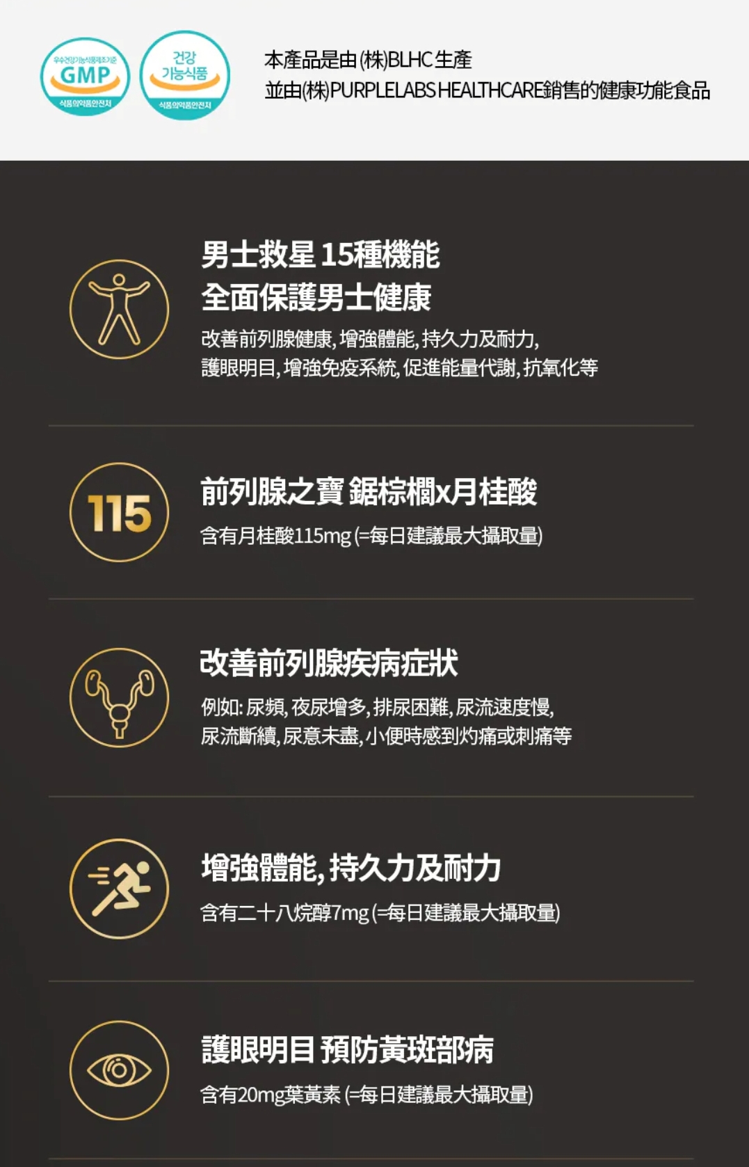 韓國🇰🇷直送✈️Dr.PRIO鋸棕櫚前列腺全能膠囊 (一盒30粒) ⭐改善前列腺及眼睛健康,減少夜頻紮醒 ⭐增強體能表現,持久力及耐力 ⭐主要成份:鋸棕櫚,二十八烷醇,葉黃素,維他命,礦物質 ⭐不含西藥成份,無副作用;每日1粒 *如正在服用相關處方藥物,服用前請先向醫生諮詢是否適合服用