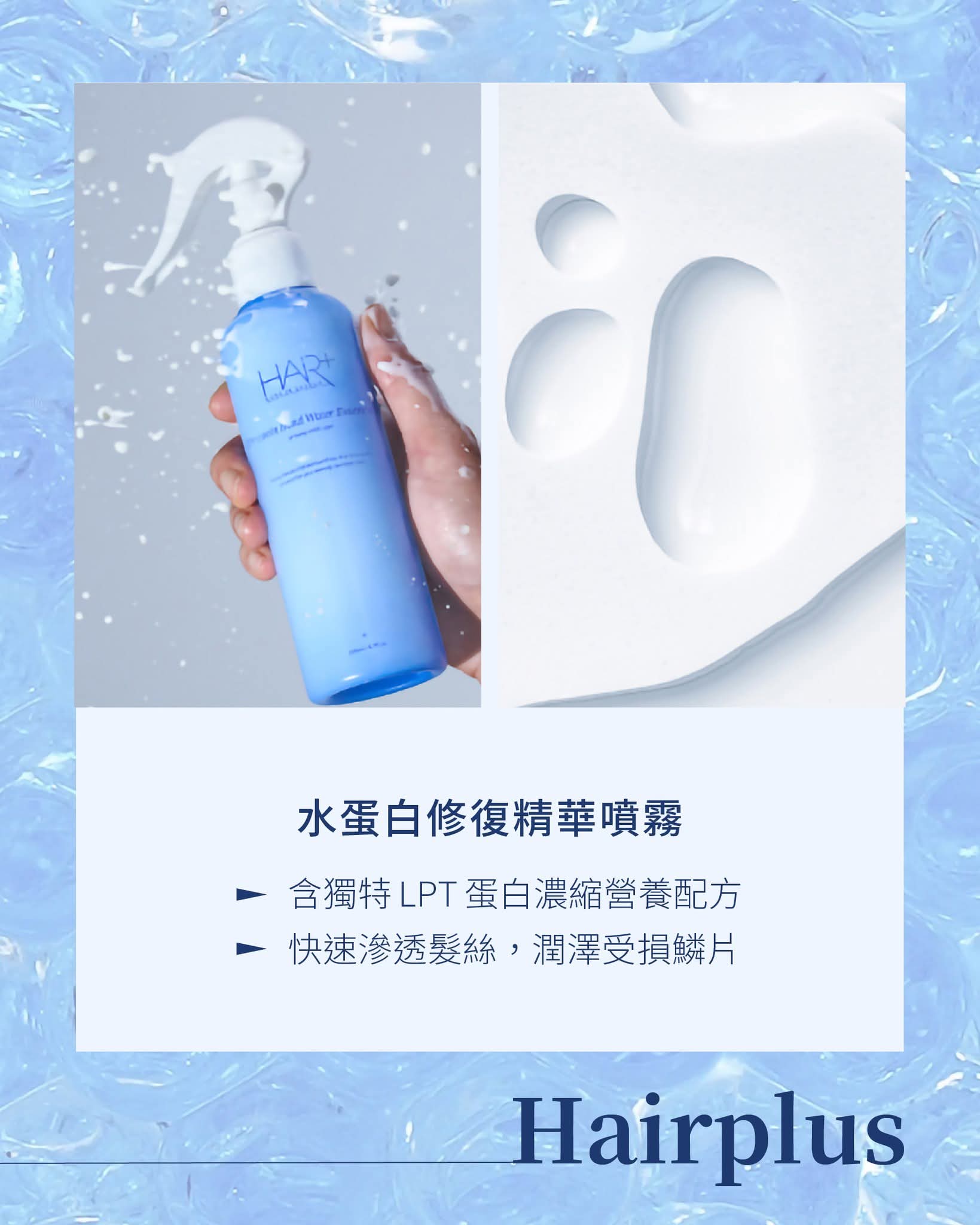 韓國🇰🇷直送✈️Hairplus 天然蛋白免沖滋養防脫洗護髮噴霧 200ml 📌受損髮轉生術💆♀️✨ 韓國Hairplus水蛋白系列護髮噴霧💖 讓髮質柔軟又順滑! 融合護髮精華與精華乳 輕輕按壓噴頭即可均勻地噴出💦 噴頭還有安全卡榫設計👍🏻 關閉就不會不小心露出~ 質地十分水潤,適合半乾髮時噴灑於中後段頭髮🌟 香味彷彿是剛洗好澡的淡淡花果香氣💐 留香時間很長,一整天持久留香~ 專為修護受損髮質設計的高效護髮產品‼️ 特別適合經常染燙或髮質受損的人群🆘 能有效改善髮絲健康,讓頭髮恢復光澤與彈性💫 ✔️ 含獨特 LPT 蛋白濃縮營養配方🧬✨ ✔️ 含38種高濃縮蛋白質成分 集中修護注入蛋白質 ✔️ 3種核心蛋白質:牛奶蛋白質、小麥蛋白質、蠶絲蛋白質 ✔️ 防靜電⚡ ✔️ 水狀精華,快速滲透髮絲,潤澤受損鱗片🌊 ✔️ 乾濕髮皆可使用,隨時隨地即時修護髮絲 💧 高濃縮蛋白質配方 :內含水解膠原蛋白,能迅速滲透髮絲,補充流失的蛋白質,修復受損髮質,提升髮絲強韌度。 💧 即時補水效果 :被稱為“0秒精華”,能快速為髮絲補充水分,改善乾燥毛躁,讓頭髮更柔順光滑。 💧 輕盈質地 :水感配方不黏膩,使用後不會讓頭髮感覺厚重,適合日常使用。 💧 方便使用 :採用噴霧設計,輕鬆均勻地噴灑於髮絲上,適合忙碌的日常護理。 使用方法: 在洗髮後,將頭髮用毛巾擦至半乾狀態,然後將精華均勻噴灑於髮絲上,特別是受損部位,無需沖洗即可進行吹乾或自然風乾。