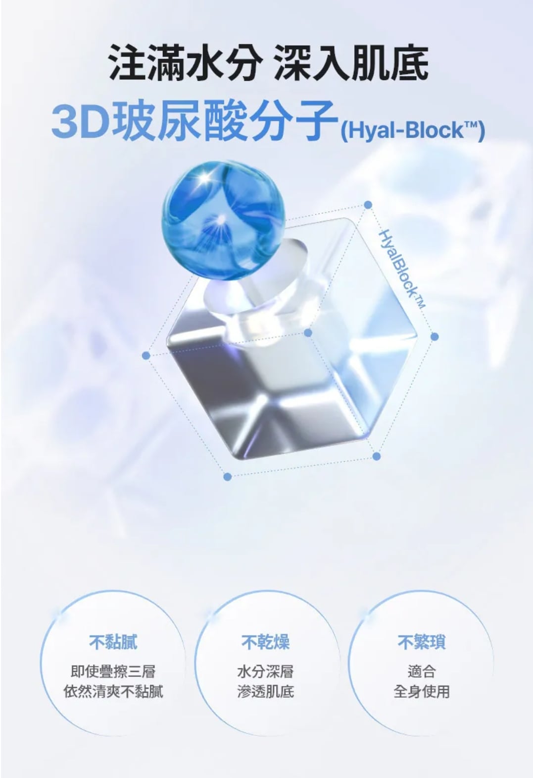 新品韓國最新出Meditherapy 333 玻尿酸保濕精華 150ml ✅3秒吸收,3層叠擦也不粘膩, 使用3D玻尿酸成分技術 作為肌膚護理第一步的透明質酸精華,為您介紹最有效的使用方法。 👇🏻👇🏻 打開肌膚通道,提高護膚品吸收率 將水分注入肌膚深層2.5毫米 第三層:形成強效鎖水屏障,防止水分流失 ✅輕盈不黏膩的質地,即使疊加三層也毫無負擔。疊加越多,水分越密集,保濕效果持久。 ✅經數據驗證,長效保濕力達120.05%* ✅一瓶搞定完美補水,現在就用三層疊加,感受肌膚的深層水潤