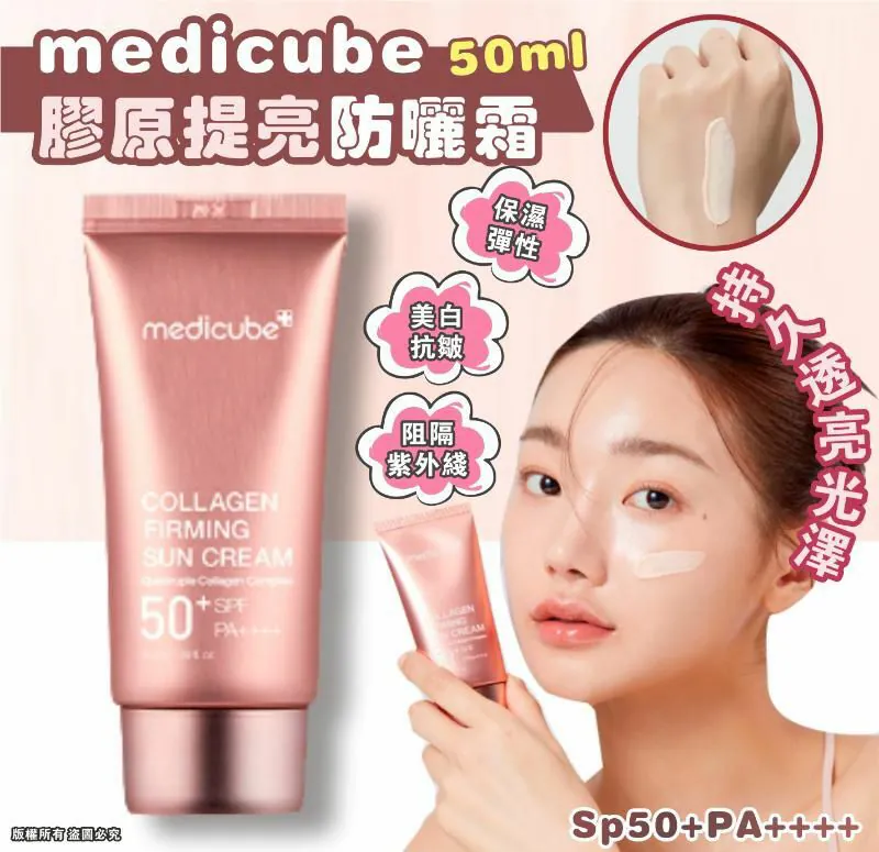 韓國🇰🇷直送✈️medicube Collagen Firming Sun Cream膠原提亮防曬霜SP50 PA++++ 50ml ❤️美白、提亮、防曬❤️ 專利膠原蛋白成分+潤色功效,控油薄透不悶黏,對抗紫外線及提亮、改善暗沈膚色,打造自然光澤👍 保濕彈性護理、經人體適用測試,證實提升肌底彈性,超越一般防曬霜,真正有效達到嫩白亮😍 專利膠原蛋白成分填補肌膚底層所需 更透亮更服帖的 deep膠原提亮防曬霜 #膠原提亮防曬霜 #持久透亮光澤 #3大功能性 #專利膠原蛋白成分 打造自然光澤(增加紅外線{熱}環境條件下肌膚保濕度) 減少紅外線{熱}環境條件下肌膚水分流失量 提升肌底含水量